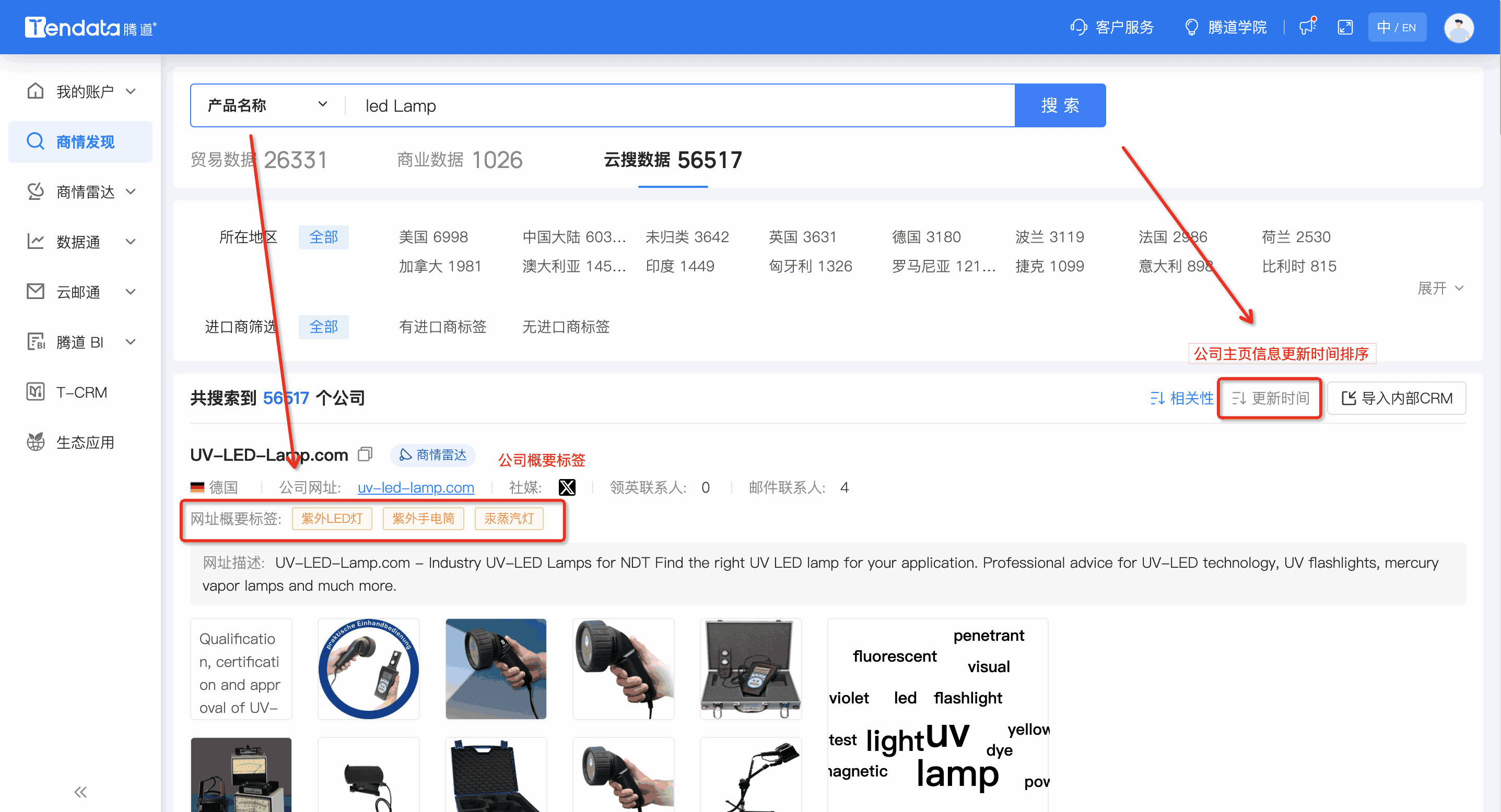 用户可顺利获得更新时间角度去查看近期新增和信息更新的公司,来这些公司进行第一时间营销或作为重点对象关注。